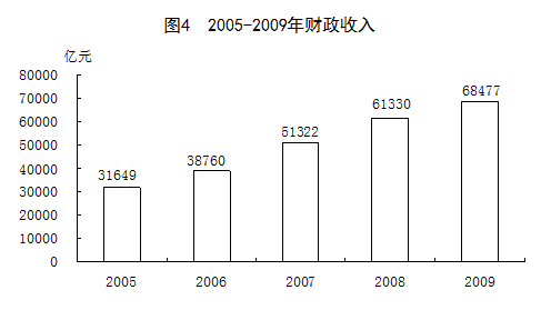 全年財(cái)政收入68477億元,比上年增加7147億元,增長(zhǎng)11.7%;其中稅收收入59515億元,增加5291億元,增長(zhǎng)9.8%。