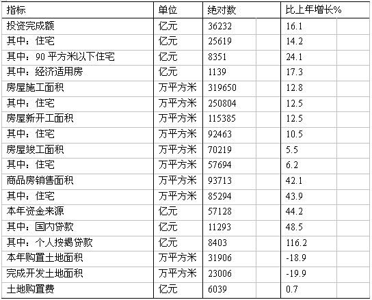 全年房地產(chǎn)開(kāi)發(fā)投資36232億元,比上年增長(zhǎng)16.1%。其中,商品住宅投資25619億元,增長(zhǎng)14.2%;辦公樓投資1378億元,增長(zhǎng)18.1%;商業(yè)營(yíng)業(yè)用房投資4172億元,增長(zhǎng)24.4%。 表6:2009年房地產(chǎn)開(kāi)發(fā)和銷售主要指標(biāo)完成情況