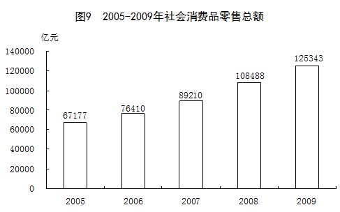年末全國(guó)參加城鎮(zhèn)基本養(yǎng)老保險(xiǎn)人數(shù)23498萬(wàn)人,比上年末增加1607萬(wàn)人。其中參保職工17703萬(wàn)人,參保離退休人員5795萬(wàn)人。參加城鎮(zhèn)基本醫(yī)療保險(xiǎn)的人數(shù)40061萬(wàn)人,增加8239萬(wàn)人。其中,參加城鎮(zhèn)職工基本醫(yī)療保險(xiǎn)人數(shù)21961萬(wàn)人,參加城鎮(zhèn)居民基本醫(yī)療保險(xiǎn)人數(shù)18100萬(wàn)人。參加城鎮(zhèn)醫(yī)療保險(xiǎn)的農(nóng)民工4335萬(wàn)人,增加69萬(wàn)人。參加失業(yè)保險(xiǎn)的人數(shù)12715萬(wàn)人,增加316萬(wàn)人。參加工傷保險(xiǎn)的人數(shù)14861萬(wàn)人,增加1074萬(wàn)人。其中參加工傷保險(xiǎn)農(nóng)民工5580萬(wàn)人,增加638萬(wàn)人。參加生育保險(xiǎn)的人數(shù)10860萬(wàn)人,增加1606萬(wàn)人。2716個(gè)縣(市、區(qū))開(kāi)展了新型農(nóng)村合作醫(yī)療工作,新型農(nóng)村合作醫(yī)療參合率94.0%。新型農(nóng)村合作醫(yī)療基金累計(jì)支出總額為646億元,累積受益4.9億人次。新型農(nóng)村社會(huì)養(yǎng)老保險(xiǎn)試點(diǎn)順利啟動(dòng)。年末全國(guó)領(lǐng)取失業(yè)保險(xiǎn)金人數(shù)為235萬(wàn)人。 年末全國(guó)共有各類提供住宿的收養(yǎng)性社會(huì)服務(wù)機(jī)構(gòu)3.9萬(wàn)個(gè),床位275.4萬(wàn)張,收養(yǎng)各類人員208.8萬(wàn)人。其中,農(nóng)村養(yǎng)老服務(wù)機(jī)構(gòu)3.0萬(wàn)個(gè),床位188.5萬(wàn)張,收養(yǎng)各類人員151.1萬(wàn)人。各類不提供住宿的社區(qū)服務(wù)設(shè)施14.0萬(wàn)個(gè),其中,社區(qū)服務(wù)中心9726個(gè),社區(qū)服務(wù)站2.5萬(wàn)個(gè)。全年2347.7萬(wàn)城市居民得到政府最低生活保障,比上年增加12.9萬(wàn)人;4759.3萬(wàn)農(nóng)村居民得到政府最低生活保障,增加453.8萬(wàn)人;554.3萬(wàn)農(nóng)村居民得到政府五保救濟(jì),增加5.7萬(wàn)人。全年救助城市醫(yī)療困難群眾417.2萬(wàn)人次,救助農(nóng)村醫(yī)療困難群眾688.4萬(wàn)人次;資助1047.8萬(wàn)城鎮(zhèn)困難群眾參加城鎮(zhèn)醫(yī)療保險(xiǎn),資助3689.8萬(wàn)農(nóng)村困難群眾參加新型農(nóng)村合作醫(yī)療。全年銷售社會(huì)福利彩票756億元,直接接收社會(huì)捐贈(zèng)款41億元。 十二、資源、環(huán)境和安全生產(chǎn) 全年土地整理復(fù)墾開(kāi)發(fā)補(bǔ)充耕地26.9萬(wàn)公頃。 全年全國(guó)國(guó)有建設(shè)用地供應(yīng)總量31.9萬(wàn)公頃,比上年增長(zhǎng)44.2%。其中,工礦倉(cāng)儲(chǔ)用地11.9萬(wàn)公頃,增長(zhǎng)44.1%;房地產(chǎn)用地10.3萬(wàn)公頃,增長(zhǎng)36.7%;基礎(chǔ)設(shè)施等其他用地9.7萬(wàn)公頃,增長(zhǎng)53.0%。全年全國(guó)105個(gè)重點(diǎn)監(jiān)測(cè)城市綜合地價(jià)比上年上漲5.0%,其中商業(yè)地價(jià)上漲5.6%,居住地價(jià)上漲7.9%,工業(yè)地價(jià)上漲1.6%。 全年水資源總量23763億立方米,比上年減少13.4%;人均水資源1784.9立方米,減少13.8%。全年平均降水量583.1毫米,減少10.9%。年末全國(guó)大型水庫(kù)蓄水總量1805億立方米,比上年末少蓄水156億立方米。全年總用水量5933億立方米,比上年增加0.4%。其中,生活用水增加2.9%,工業(yè)用水減少0.6%,農(nóng)業(yè)用水增加0.6%,生態(tài)補(bǔ)水減少9.8%。萬(wàn)元國(guó)內(nèi)生產(chǎn)總值用水量209.3立方米,比上年下降7.6%。萬(wàn)元工業(yè)增加值用水量116.4立方米,下降8.2%。人均用水量445.7立方米,下降0.1%。 國(guó)土資源調(diào)查及地質(zhì)勘查新發(fā)現(xiàn)大中型礦產(chǎn)地398處,其中,能源礦產(chǎn)地107處,金屬礦產(chǎn)地177處,非金屬礦產(chǎn)地109處,水氣礦產(chǎn)地5處。有65種礦產(chǎn)新增查明資源儲(chǔ)量,其中,石油11.2億噸,天然氣7234億立方米,原煤503.6億噸。 根據(jù)第七次全國(guó)森林資源清查結(jié)果,截至2008年,森林面積19545萬(wàn)公頃,森林覆蓋率20.36%,活立木總蓄積量149.13億立方米,森林蓄積量137.21億立方米。 全年完成造林面積588萬(wàn)公頃,其中人工造林389萬(wàn)公頃。林業(yè)重點(diǎn)工程完成造林面積447萬(wàn)公頃,占全部造林面積的76.0%。全民義務(wù)植樹(shù)24.8億株。截至年底,自然保護(hù)區(qū)達(dá)到2529個(gè),其中國(guó)家級(jí)自然保護(hù)區(qū)319個(gè)。新增綜合治理水土流失面積4.8萬(wàn)平方公里,新增實(shí)施水土流失地區(qū)封育保護(hù)面積2.7萬(wàn)平方公里。截至2009年底,已確權(quán)集體林地面積為10093萬(wàn)公頃,其中發(fā)放林權(quán)證的面積為7573萬(wàn)公頃。 全年平均氣溫為9.8℃,共有9個(gè)臺(tái)風(fēng)登陸。 初步測(cè)算,全年能源消費(fèi)總量31.0億噸標(biāo)準(zhǔn)煤,比上年增長(zhǎng)6.3%。煤炭消費(fèi)量30.2億噸,增長(zhǎng)9.2%;原油消費(fèi)量3.8億噸,增長(zhǎng)7.1%;天然氣消費(fèi)量887億立方米,增長(zhǎng)9.1%;電力消費(fèi)量36973億千瓦小時(shí),增長(zhǎng)6.2%。全國(guó)萬(wàn)元國(guó)內(nèi)生產(chǎn)總值能耗下降2.2%。主要原材料消費(fèi)中,鋼材消費(fèi)量6.9億噸,增長(zhǎng)22.4%;精煉銅消費(fèi)量753萬(wàn)噸,增長(zhǎng)39.7%;電解鋁消費(fèi)量1439萬(wàn)噸,增長(zhǎng)14.4%;乙烯消費(fèi)量1066萬(wàn)噸,增長(zhǎng)8.0%;水泥消費(fèi)量16.3億噸,增長(zhǎng)17.0%。 七大水系的408個(gè)水質(zhì)監(jiān)測(cè)斷面中,Ⅰ~Ⅲ類水