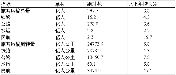 表13:2009年各種運(yùn)輸方式完成旅客運(yùn)輸量及其增長(zhǎng)速度