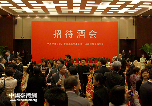 29日晚,中共中央臺辦、中共上海市委及上海世博會執委會在上海舉行酒會,招待出席上海世博會開幕式活動的臺灣嘉賓。(中國臺灣網 張弛 攝)