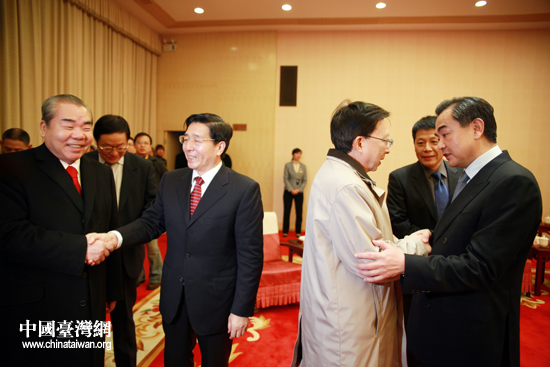 17日晚,廣西壯族自治區黨委書記郭聲琨和中臺辦、國臺辦主任王毅一起,會見來桂林參加第九屆兩岸關系研討會的臺灣中華文化總會會長劉兆玄等嘉賓。(中國臺灣網 鐘寶華 攝)