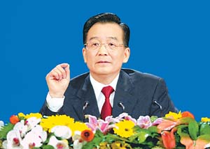 3月14日,國務院總理溫家寶在北京人民大會堂與中外記者見面,并回答記者提問。 本報記者 李舸攝
