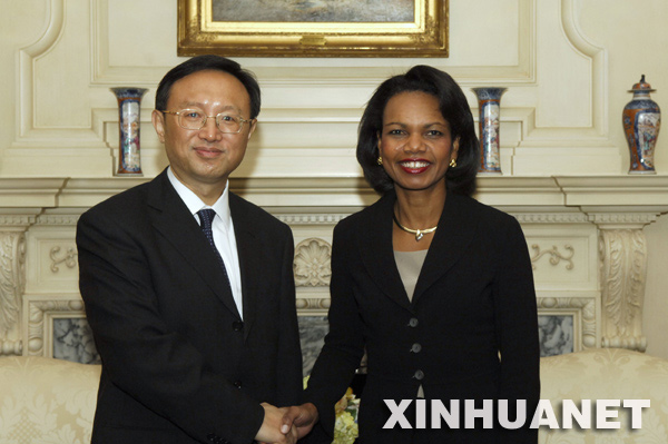 2007年11月26日,中國外交部長楊潔篪在美國首都華盛頓會見了美國國務卿賴斯。