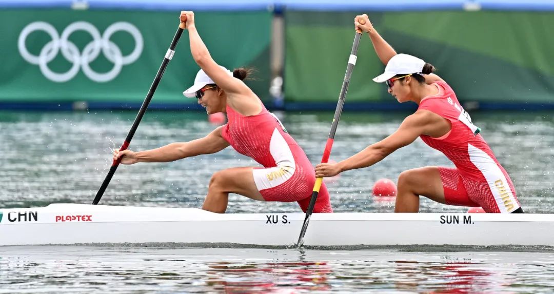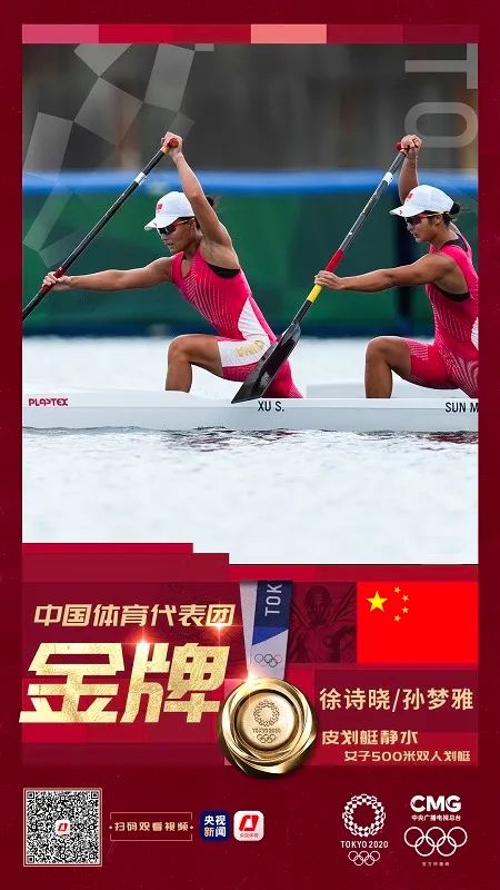 8月7日,東京奧運(yùn)會(huì)女子500米雙人劃艇決賽中國組合徐詩曉/孫夢雅以1分55秒495奪得金牌