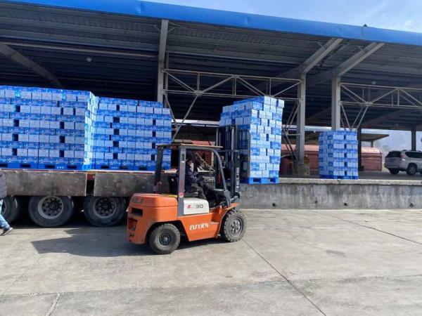 4月10日,一批援助物資在拉薩市西貨站裝車,即將運往上海市和吉林省等地。西藏自治區黨委、政府心系兩省市抗疫工作,決定向上海市、吉林省緊急支援部分抗疫生活物資,西藏將支援上海市 100 噸牦牛肉和 3000 噸天然飲用水,支援吉林省 5000 噸天然飲用水。