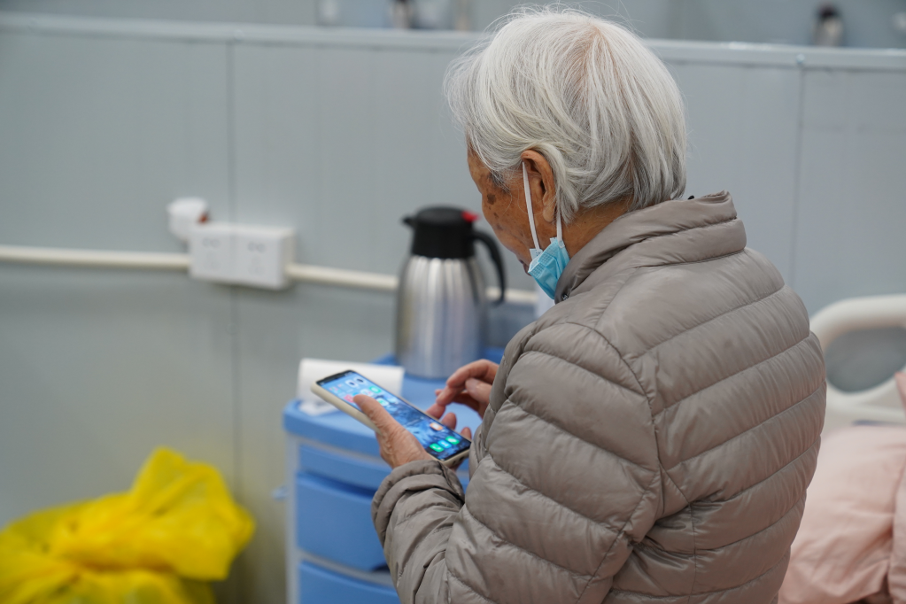 王漫如老人在臨港方艙醫(yī)院休息(新華社記者楊有宗 攝)