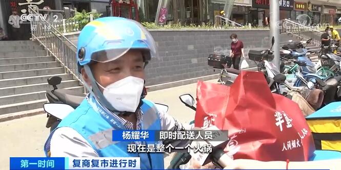 即時配送人員 楊耀華:原來我們(每天)跑十幾單,現在都20來單。原來是一個小盒飯或者一份烤魚,現在是整個一個火鍋,全家桶一樣。
