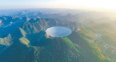 “中國(guó)天眼”全景。新華社記者 歐東衢攝