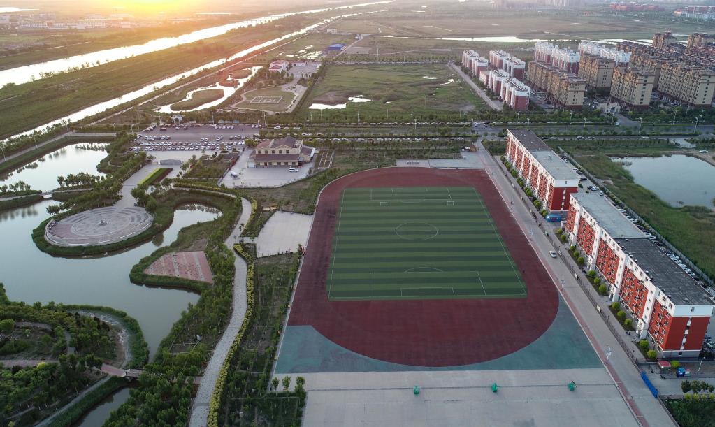 這是5月27日拍攝的河北省黃驊市春熙公園共享體育場(chǎng)(無人機(jī)照片)。新華社記者 駱學(xué)峰 攝