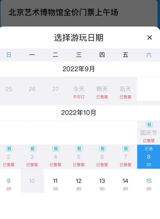 “早就想去北京藝術博物館看看,據(jù)說是‘京西小故宮’。之前周末就特別難約,沒承想十一假期更是‘一票難求’。”市民楊女士想去近日重新開放的北京藝術博物館(萬壽寺)一飽眼福,結果等她打開“北京藝術博物館”公眾號想預約時卻發(fā)現(xiàn),國慶假期7天上下午場的門票均顯示“已售罄”。