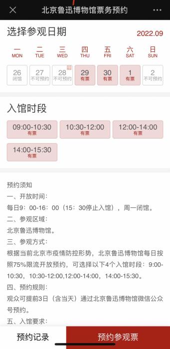 其實,市民不一定非得在假期選擇去熱門場館,一些家門口的博物館同樣也能滿足大家的文化需求,且目前票量充足。史家胡同博物館10月1日、2日、4日至7日正常開放,10月3日(周一)例行閉館,目前預約名額充足;北京魯迅博物館可提前3天預約(含當天),目前可預約的名額也很充足。