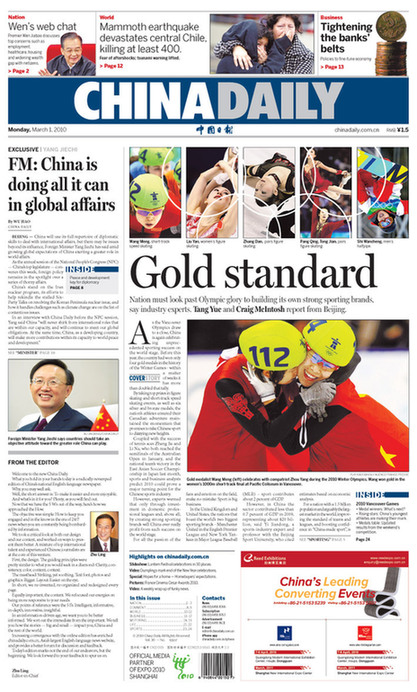 改版后的《中國日報》以“解讀中國,點評世界”為報道主題,將打造與中國國際地位相稱的世界一流英文媒體作為目標。旗下的《中國日報(美國版)》和《中國日報(香港版)》將一同改版。中國日報總編輯朱靈表示,日益繁榮昌盛的中國正吸引著越來越多的國際關注,即將召開的2010年中國“兩會”尤其為世人所矚目。作為被外媒轉(zhuǎn)引最多的中國報紙,《中國日報》在“兩會”召開前夕全面改版,并成立了歷史上規(guī)模最大的報道組采訪報道“兩會”,就是要借此時機更加全面、客觀地回應海外受眾關切,更好地向世界說明中國。