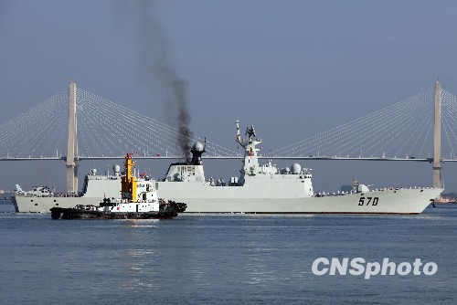 8月21日,中國(guó)海軍赴亞丁灣、索馬里海域執(zhí)行護(hù)航任務(wù)的第二批艦艇編隊(duì)“深圳”號(hào)導(dǎo)彈驅(qū)逐艦、“黃山”號(hào)導(dǎo)彈護(hù)衛(wèi)艦、“微山湖”號(hào)綜合補(bǔ)給艦及800余護(hù)航將士凱旋歸來(lái),圓滿完成護(hù)航任務(wù)后順利返回湛江某軍港。圖為“黃山”號(hào)導(dǎo)彈護(hù)衛(wèi)艦駛向軍港碼頭。 中新社發(fā) 孫自法 攝
