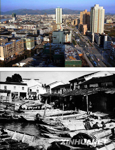 上圖:位于東海之濱的溫州蒼南縣龍港鎮正沐浴在陽光下(攝于2002年11月17日)。
