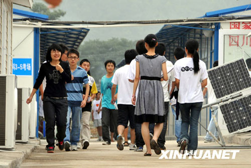 2008年7月3日,在綿陽長虹培訓中心考點,北川中學和來自北川的其他高考學生參加高考。新華社發