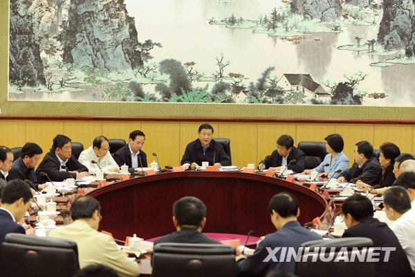 9月27日,中共中央政治局常委、中央書記處書記、國家副主席、中央深入學習實踐科學發展觀活動領導小組組長習近平在北京中南海主持召開中央深入學習實踐科學發展觀活動領導小組第十一次會議并講話。新華社記者 饒愛民 攝
