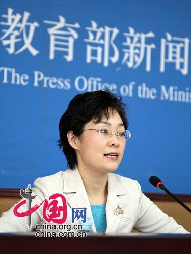 教育部新聞發言人續梅主持26日的新聞發布會。中國網 楊佳