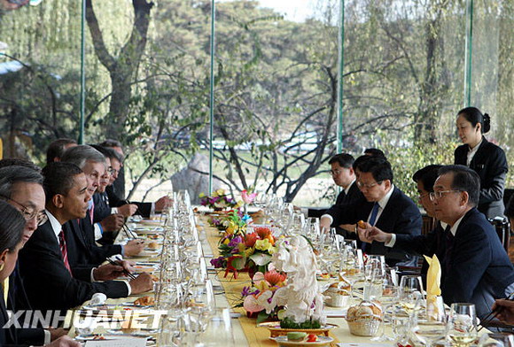 11月18日,中國國務(wù)院總理溫家寶在北京釣魚臺國賓館會見正在中國進行國事訪問的美國總統(tǒng)奧巴馬,并為他舉行工作午宴。新華社記者 姚大偉 攝