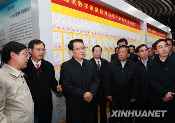 11月18日至22日,中共中央政治局常委李長春在廣東調研。這是11月19日,李長春在位于廣州市的國家數字家庭應用示范產業基地考察。新華社記者龐興雷攝