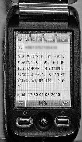 全國基層黨建工作手機(jī)信息系統(tǒng)昨(1月5日)正式開通,習(xí)近平向全國100萬名基層黨組織書記、大學(xué)生“村官”發(fā)出問候短信。系統(tǒng)收集匯總了全國100萬名基層黨組織書記、大學(xué)生“村官”及省、市、縣黨委組織部長手機(jī)號碼,通過手機(jī)短信互動,實現(xiàn)了中央組織部、省區(qū)市黨委組織部與基層黨組織書記、大學(xué)生“村官”之間快捷、及時、雙向、安全的聯(lián)系溝通,是運(yùn)用現(xiàn)代化手段加強(qiáng)黨的建設(shè)的一項新舉措。