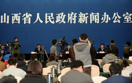 3月22日,山西省政府副秘書長巨憲華(右)在新聞發布會上通報情況。 新華社記者 燕雁 攝