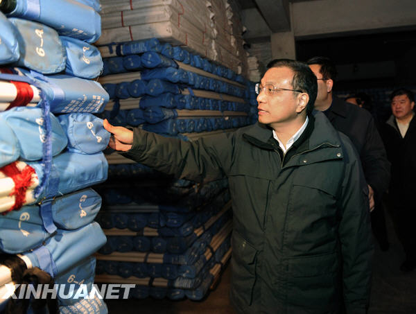 4月15日,正在遼寧考察工作的中共中央政治局常委、國(guó)務(wù)院副總理李克強(qiáng),在沈陽實(shí)地察看支援青海玉樹抗震救災(zāi)物資搶運(yùn)工作。這是李克強(qiáng)在民政部沈陽救災(zāi)物資儲(chǔ)備庫仔細(xì)察看棉衣棉被厚度和質(zhì)量。新華社記者 李濤 攝