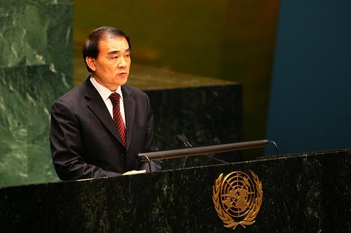 5月4日,中國代表團(tuán)團(tuán)長、中國常駐聯(lián)合國代表李保東在美國紐約聯(lián)合國總部舉行的第八次《不擴(kuò)散核武器條約》審議大會上發(fā)言,表示有效防止核武器擴(kuò)散是實(shí)現(xiàn)全面禁止和徹底銷毀核武器的必要條件,需要各方共同付諸行動。新華社記者 劉欣 攝