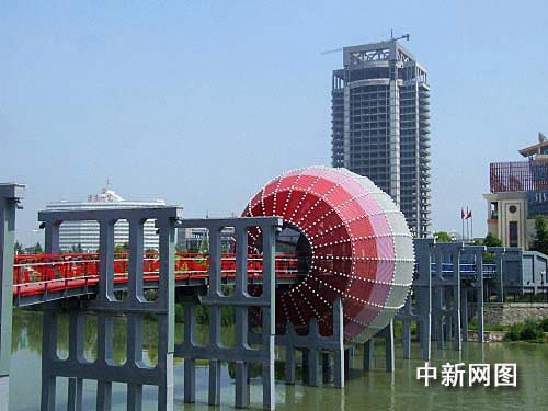 淮安南北分界標志:南面用紅色象征南方亞熱帶氣候特征。圖片來源:中新網