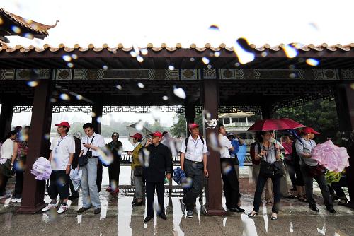 5月10日,游人在深圳荔枝公園一處涼亭避雨。當日,受強雷雨云團影響,深圳市自西向東出現強降水。8時30分深圳市氣象臺針對全市陸地、東部海區、西部海區發布暴雨黃色預警和雷電預警。新華社記者陳曄華攝
