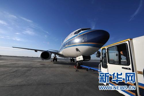 6月14日,中國南方航空公司執(zhí)飛的包機在烏魯木齊國際機場做起飛前的準(zhǔn)備。新華社記者趙戈攝