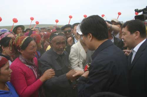 11時30分,隨著新疆維吾爾自治區(qū)黨委書記張春賢一聲令下:也拉曼水庫開工!歡歌笑語伴著鑼鼓聲、禮炮聲在山谷間回蕩……歡欣鼓舞的哈薩克牧民以隆重的“恰秀”禮儀表達內心的喜悅。
