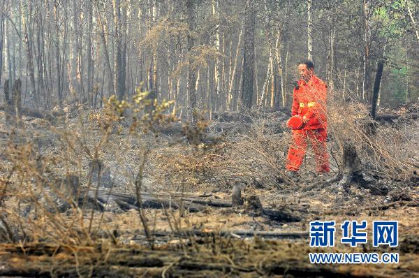 6月30日,一名森警戰(zhàn)士走過(guò)一處過(guò)火林地。內(nèi)蒙古越界火6月26日燒至黑龍江大興安嶺境內(nèi)后,目前在黑龍江大興安嶺林區(qū)參與滅火的人員已達(dá)12000人。 新華社記者 王松 攝