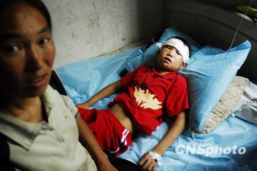 圖為一位在洪災受傷的兒童,在母親的陪伴下在醫院接受治療。 中新社發 田洪