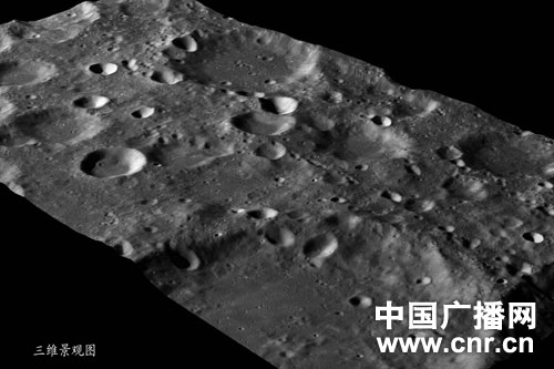 “嫦娥一號”數據繪制的三維景觀圖。(圖片來源:中廣網)
