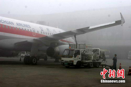 罕見夏季大霧鎖成都空港 攝影:呂俊明