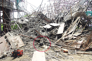 據(jù)業(yè)內(nèi)人士介紹,在樓與樓之間建“連廊”(天橋),并不是“高難工程”,泰州開發(fā)區(qū)建筑工地為何犯了如此“不高級”的錯誤?附近工地一名工作人員介紹,據(jù)他所知,“天橋”坍塌可能有兩個原因,一是該“天橋”當(dāng)天上午澆筑時,在半空中負(fù)責(zé)提供混凝土的斗車,因操作失控,誤撞了并不牢固的“天橋”;二是在下面支撐“天橋”的腳手架的“力量”不夠。但這兩種解釋并沒有得到有關(guān)方面的確認(rèn)。(陳天斌 王國柱 文/攝)