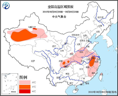 中央氣象臺(tái)8月6日06時(shí)繼續(xù)發(fā)布高溫黃色預(yù)警: