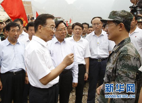 8月9日,中共中央政治局常委、國務(wù)院總理溫家寶繼續(xù)在甘肅舟曲縣特大山洪泥石流災(zāi)區(qū)察看災(zāi)情,指導(dǎo)抗洪搶險(xiǎn)救災(zāi)工作。 新華社記者 李學(xué)仁攝(資料圖)