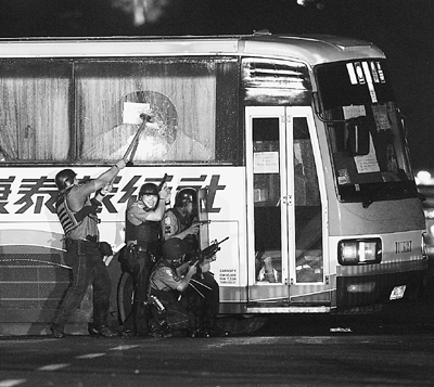 8月23日,菲律賓警察和特種部隊強攻客車解救被劫持人質。人民圖片