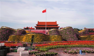 天安門廣場擺花工程收尾 巨型花壇露出真容