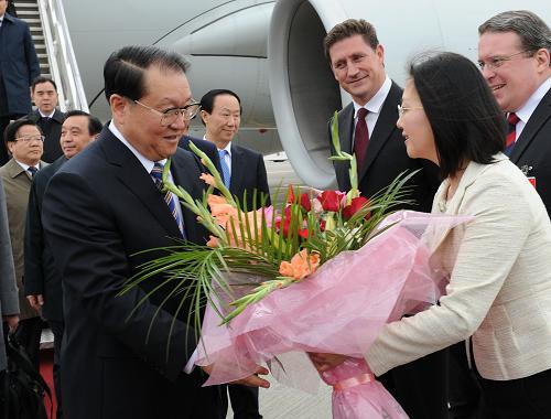 當地時間26日下午,中共中央政治局常委李長春抵達都柏林,開始對愛爾蘭進行正式友好訪問。