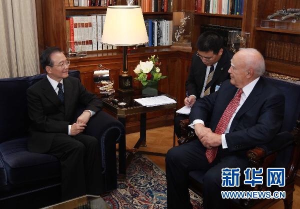 10月3日,中國國務院總理溫家寶在雅典會見希臘總統帕普利亞斯。新華社記者龐興雷攝