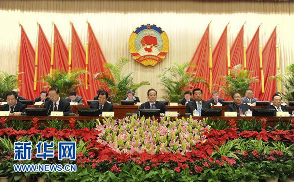 政協十一屆全國委員會常務委員會第十一次會議20日在北京開幕。這次會議的主要議題是學習貫徹中共十七屆五中全會精神,圍繞制定國民經濟和社會發展第十二個五年規劃建言獻策。中共中央政治局常委、國務院總理溫家寶出席開幕會,并作了關于中共十七屆五中全會會議情況和會議精神的報告。中共中央政治局常委、全國政協主席賈慶林主持開幕會。