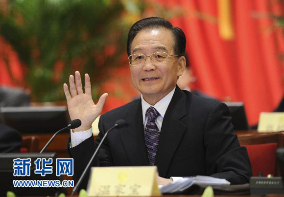 溫家寶著重介紹了《中共中央關于制定國民經濟和社會發展第十二個五年規劃的建議》的基本精神和主要內容。他指出,把科學發展作為主題,第一次在五年規劃中明確提出來,具有鮮明的時代特征。這就是要堅持以經濟建設為中心,緊緊扭住發展不放松;就是要牢牢把握重要戰略機遇期,推動經濟社會發展和綜合國力再上新臺階;就是要更加注重以人為本,促進社會公平正義和人的全面發展;就是要更加注重全面協調可持續發展,實現速度和結構質量效益相統一;就是要堅定不移推進改革開放,為科學發展提供不竭動力。推動科學發展,必須以加快轉變經濟發展方式為主線,這是當前刻不容緩的戰略任務。他重點對“十二五”時期經濟建設、社會發展、改革開放等方面的任務作了深刻闡述。
