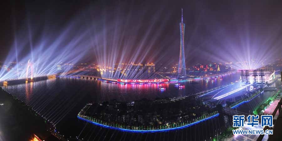 11月27日,珠江畔燈火璀璨。當(dāng)日,第16屆亞洲運動會閉幕式即將在廣州海心沙島舉行。 新華社記者郭大岳攝