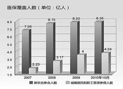“看病難、看病貴”,是糾結(jié)在百姓心頭的突出問(wèn)題。作為醫(yī)改三年重點(diǎn)實(shí)施方案的第二年,2010年承前啟后。沿著強(qiáng)基層這一方向,今年醫(yī)療體制改革繼續(xù)攻堅(jiān)克難。社會(huì)保障是民生之基,今年10月,歷經(jīng)多次討論修改的《社會(huì)保險(xiǎn)法》正式發(fā)布,首次明確“基本養(yǎng)老保險(xiǎn)全國(guó)統(tǒng)籌”、“養(yǎng)老及醫(yī)療保險(xiǎn)實(shí)現(xiàn)異地漫游”等目標(biāo),給百姓吃了一顆定心丸。截至9月底,我國(guó)城鎮(zhèn)職工養(yǎng)老保險(xiǎn)、城鎮(zhèn)醫(yī)療保險(xiǎn)、失業(yè)保險(xiǎn)、工傷保險(xiǎn)、生育保險(xiǎn)分別達(dá)到25025萬(wàn)人、42072萬(wàn)人、13147萬(wàn)人、15871萬(wàn)人、11973萬(wàn)人,均超額完成 “十一五”規(guī)劃確定的指標(biāo)任務(wù)。