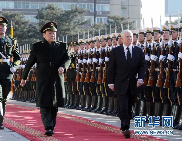 1月10日,中國國務委員兼國防部長梁光烈在北京舉行儀式歡迎美國國防部長蓋茨訪華。 新華社記者 李濤 攝