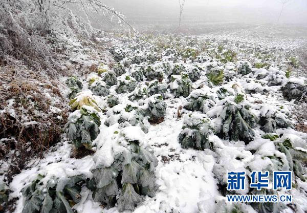資料圖片:昭通市大關縣老街村被凍壞的大片蔬菜。近期,受強冷空氣影響,云南昭通市大部分地區(qū)遭受冰雪災害,受災群眾達43萬人,10萬人飲水困難,農(nóng)業(yè)、電力、交通等部門受災嚴重。新華社記者楊宗友攝