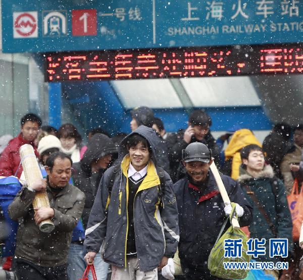 1月18日,旅客正冒雪前往上;疖囌境塑嚒槠40天的2011年春運(yùn)將于1月19日正式啟動(dòng)。春運(yùn)期間,全國旅客運(yùn)量預(yù)計(jì)將達(dá)到28.53億人次,比上年春運(yùn)增長(zhǎng)11.6%,全國鐵路預(yù)計(jì)發(fā)送旅客2.3億人次,同比增加2554萬人次,增長(zhǎng)12.5%。新華社記者 裴鑫攝